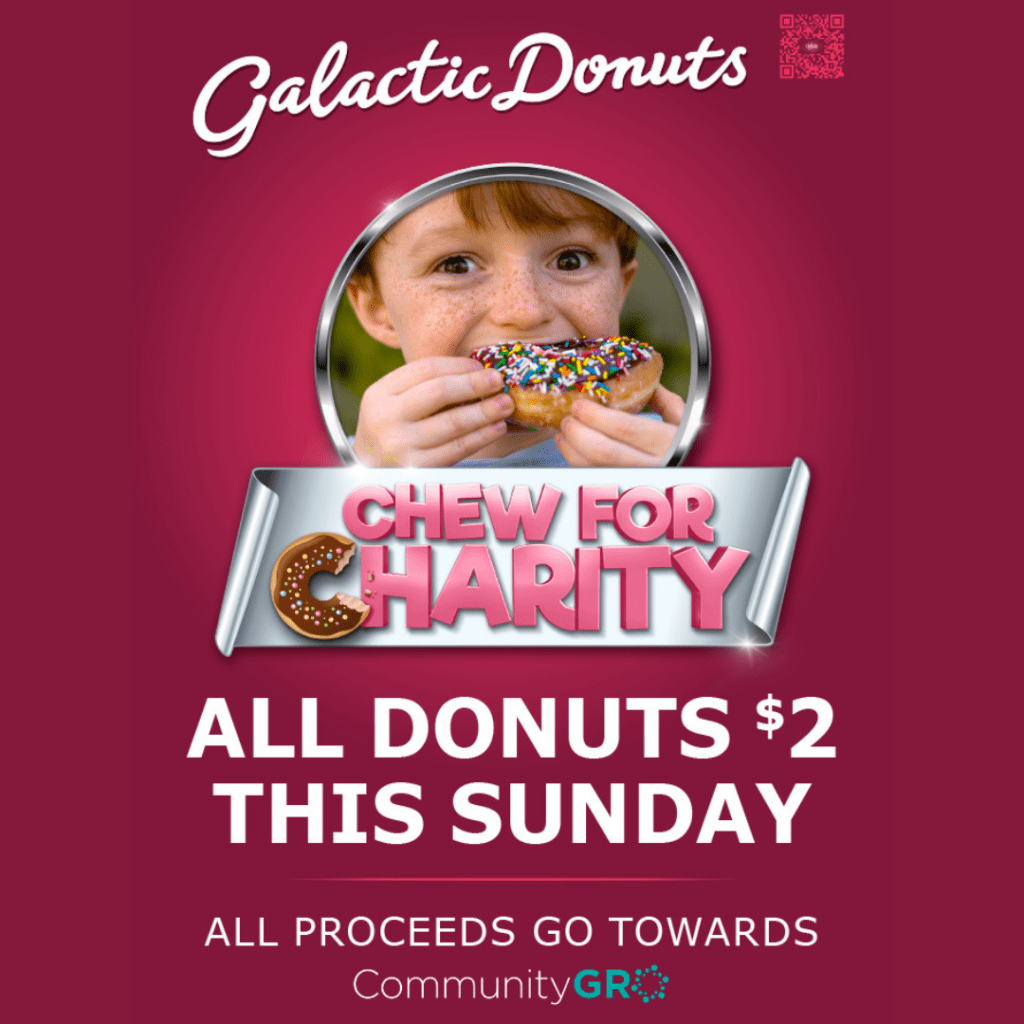 “The entire range of Galactic Donuts will be just $2 each, with every single cent donated to Community Gro.”