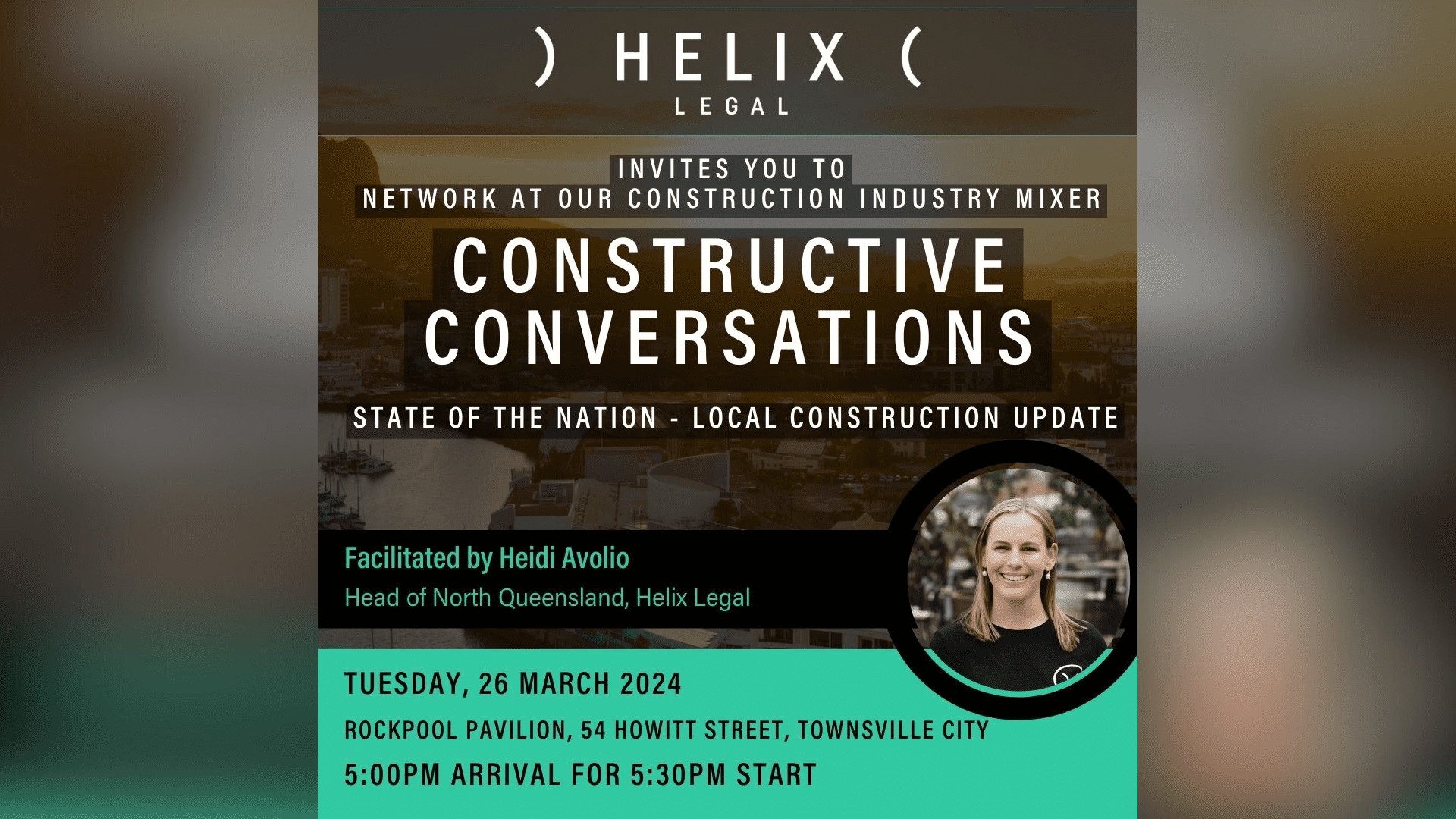This Constructive Conversations facilitated by Heidi will be one not to be missed! Joining us this time around is Helix Compliance Director, David Cahill, who will deliver a State of the Nation industry report with a specific focus on the North Queensland region. With the construction industry boom in North Queensland, we look forward to engaging in conversations with you on your personal experiences and insights within the region. We would love to see you and your colleagues there!
