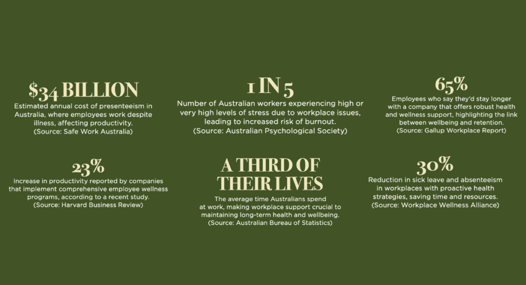 “With most Australians spending about a third of their lives at work, employers have a unique opportunity and also a responsibility to proactively support their employees’ health,” he shares.